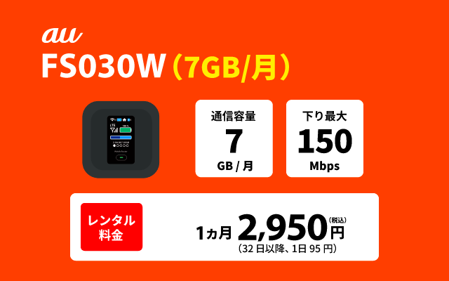 wifi レンタル 国内 au FS030W(7GB/月) モバイルWiFiルーター