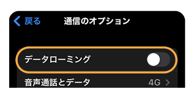 海外でご利用される場合、スマートフォン本体のデータローミングをOFFにします。