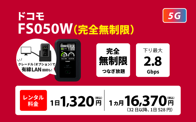 wifi レンタル 国内 ドコモ 5G FS050W(完全無制限) モバイルWiFiルーター