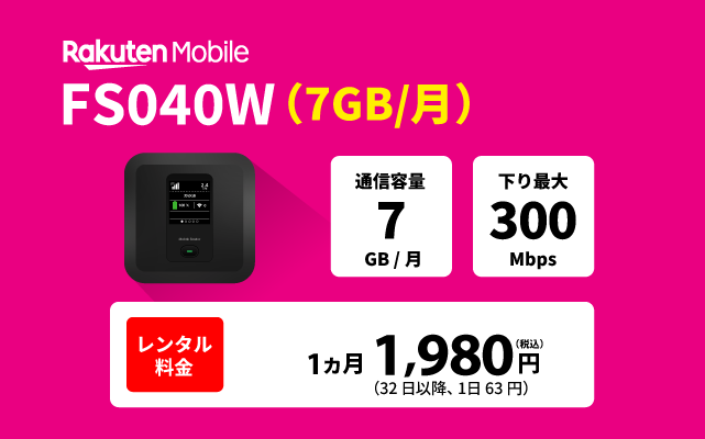WiFi レンタル 国内 楽天モバイル FS040W(7GB/月) モバイルWiFiルーター