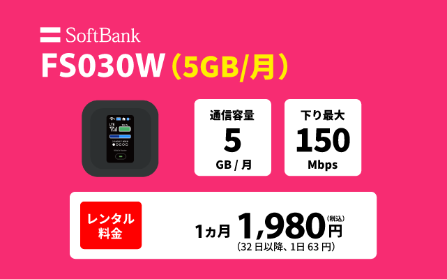 wifi レンタル 国内 SoftBank FS030W(5GB/月) モバイルWiFiルーター