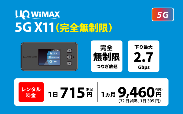 wifi レンタル 国内 WiMAX 5G X11(完全無制限) モバイルWiFiルーター